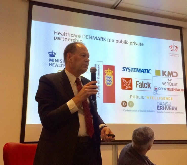 Hans Erik Henriksen beskrev det danske sundhedssystem og digitaliseringen i Danmark. Han præsenterede fordelene ved og fremtiden for den danske eHealth, og understregede: